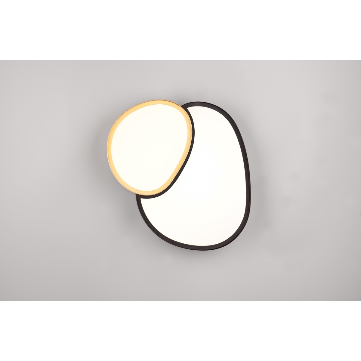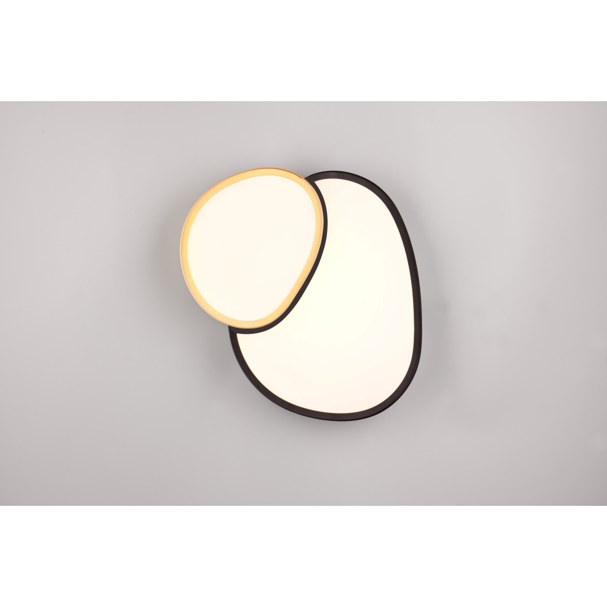 RISE – Φωτιστικό οροφής LED (Κωδ. 647510280) με μαύρο-χρυσό μεταλλικό φινίρισμα, ελαφρύτερη έκδοση ρυθμιζόμενης φωτεινότητας μέσω dimmer και τηλεχειριστηρίου. Ιδανικό για χαλαρωτικούς χώρους με minimal design και ζεστή αίσθηση. Τεχνικά χαρακτηριστικά: 21W, 2400lm, 2700-6500K.