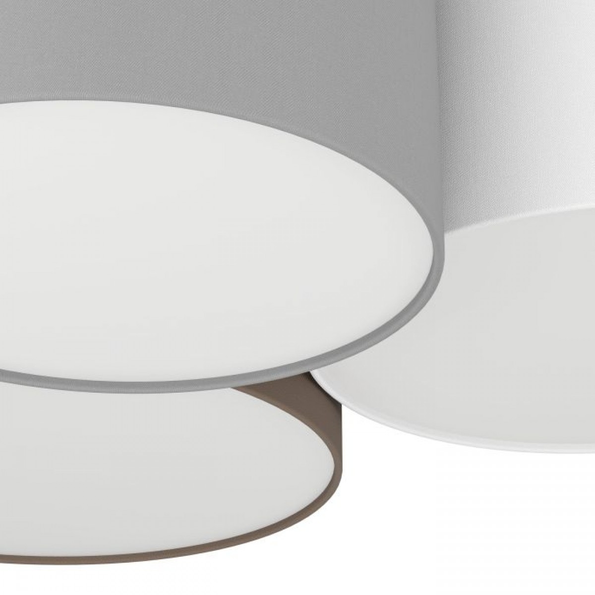 Το φωτιστικό οροφής PASTORE της EGLO διαθέτει τρία υφασμάτινα καπέλα σε διαφορετικά μεγέθη και αποχρώσεις – ανθρακί καφέ, λευκό και γκρι – δημιουργώντας κομψή αρμονία και μοντέρνα αισθητική. Ο λευκός διαχυτής φωτός προσφέρει ομοιόμορφο και απαλό φωτισμό, κρύβοντας παράλληλα τους λαμπτήρες. Συνδυάζεται εύκολα με κάθε είδος διακόσμησης και χαρίζει ζεστή ατμόσφαιρα σε σαλόνι, υπνοδωμάτιο, τραπεζαρία ή χολ. Διαθέτει υποδοχή για λαμπτήρες E27 (δεν περιλαμβάνονται).