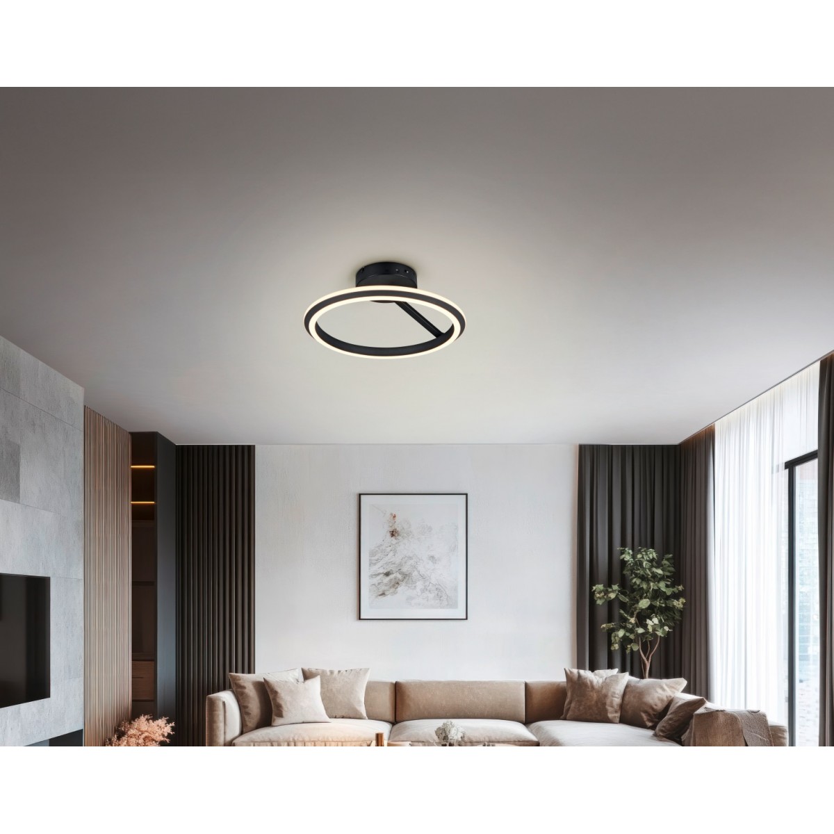 AMADOR Φωτιστικό Οροφής 635510132 TRIO LIGHTING. Το φωτιστικό AMADOR της TRIO LIGHTING ξεχωρίζει για την κυκλική, πουριστική αισθητική του και το ματ μαύρο μεταλικό σώμα, δημιουργώντας ένα διακριτικό αλλά σύγχρονο αποτέλεσμα στον χώρο. Διαθέτει ενσωματωμένο LED 34W, φωτεινότητα 4000lm, επιλογές θερμοκρασίας χρώματος 2300/3000/4000K, ρύθμιση χρώματος απευθείας από το φωτιστικό και dimming μέσω διακόπτη. Ιδανικό για σαλόνι, υπνοδωμάτιο και είσοδο, συνδυάζει καθαρό design, λειτουργικότητα και ευέλικτο φωτισμό.